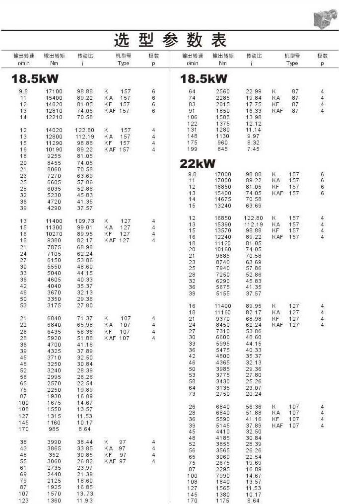 選型參數表18.5kW,22kW