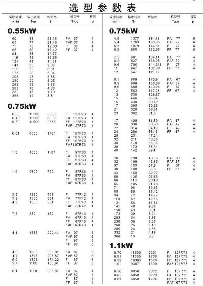 選型參數表0.55kW(續),0.75kW,1.1kW
