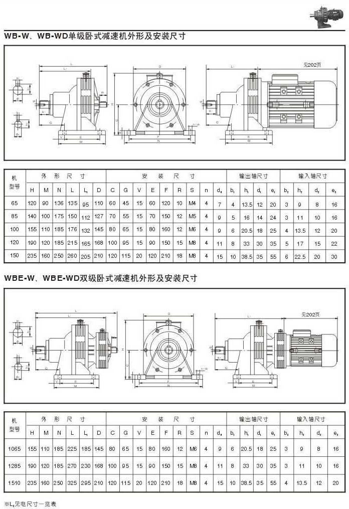 WB-W.WB-WD單級臥式減速機(jī)外型圖,安裝尺寸WBE-W . WEB-WD雙級臥式減速機(jī)外型圖,安裝尺寸