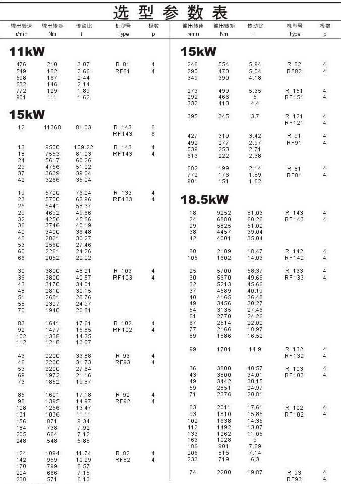 選型參數表11kW(續),,15kW,18.5kW