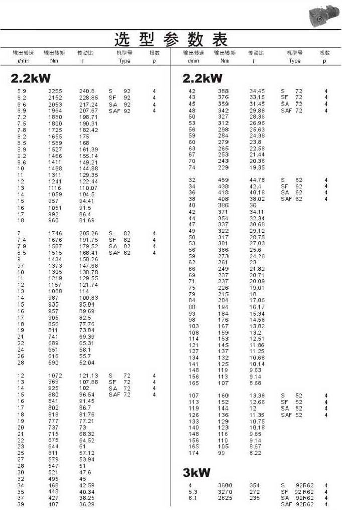 選型參數表2.2kW(續)和3kW